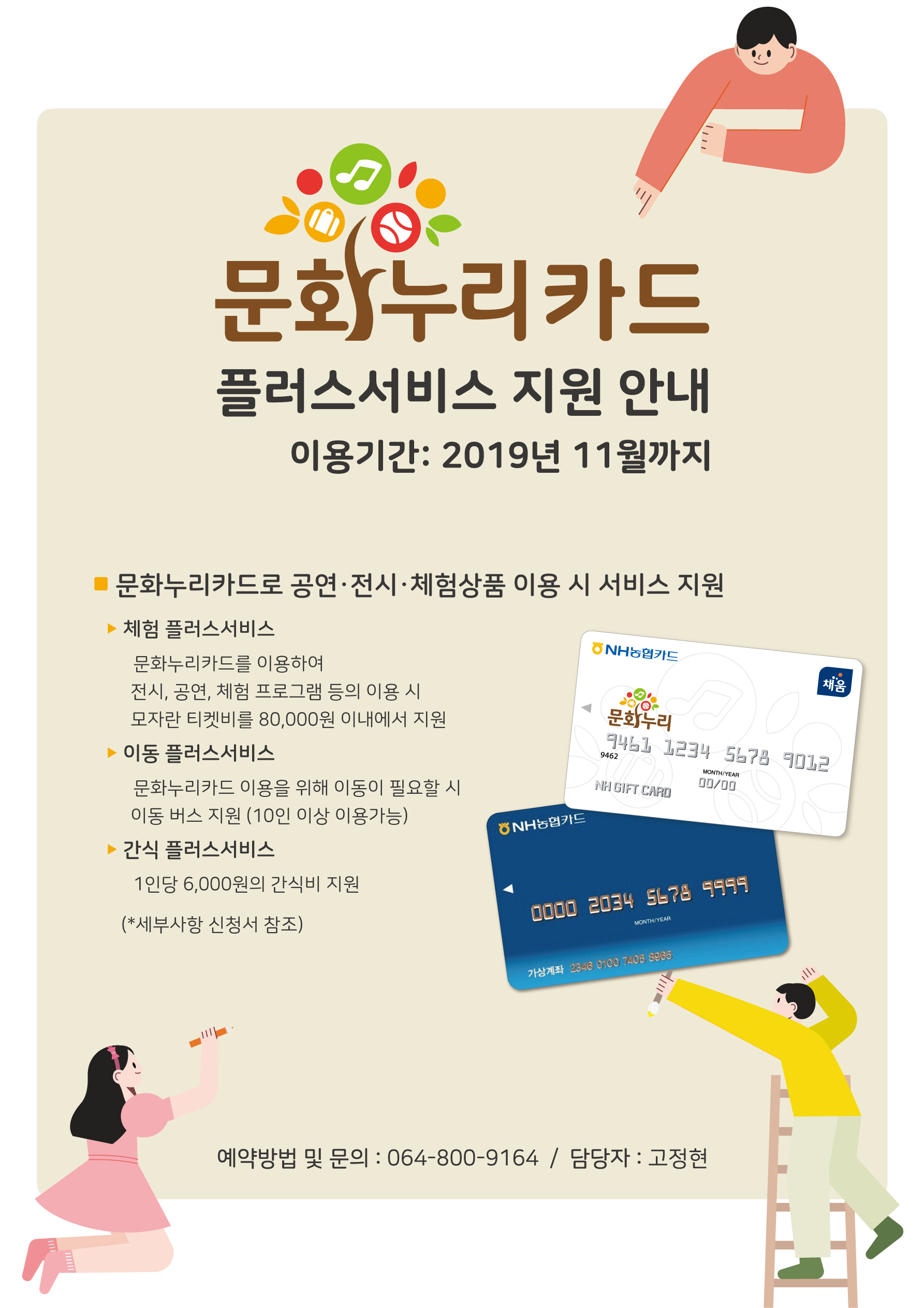 제주문화예술재단에서 문화누리카드를 이용하고 있는 시설에 제공하는 플러스서비스입니다.