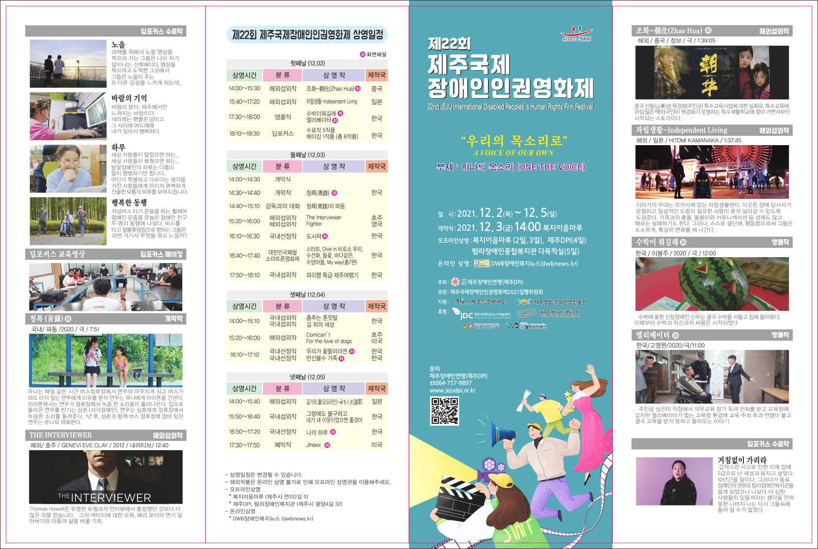 12월 2일부터 제 22회 제주국제장애인인권영화제를 개최합니다.