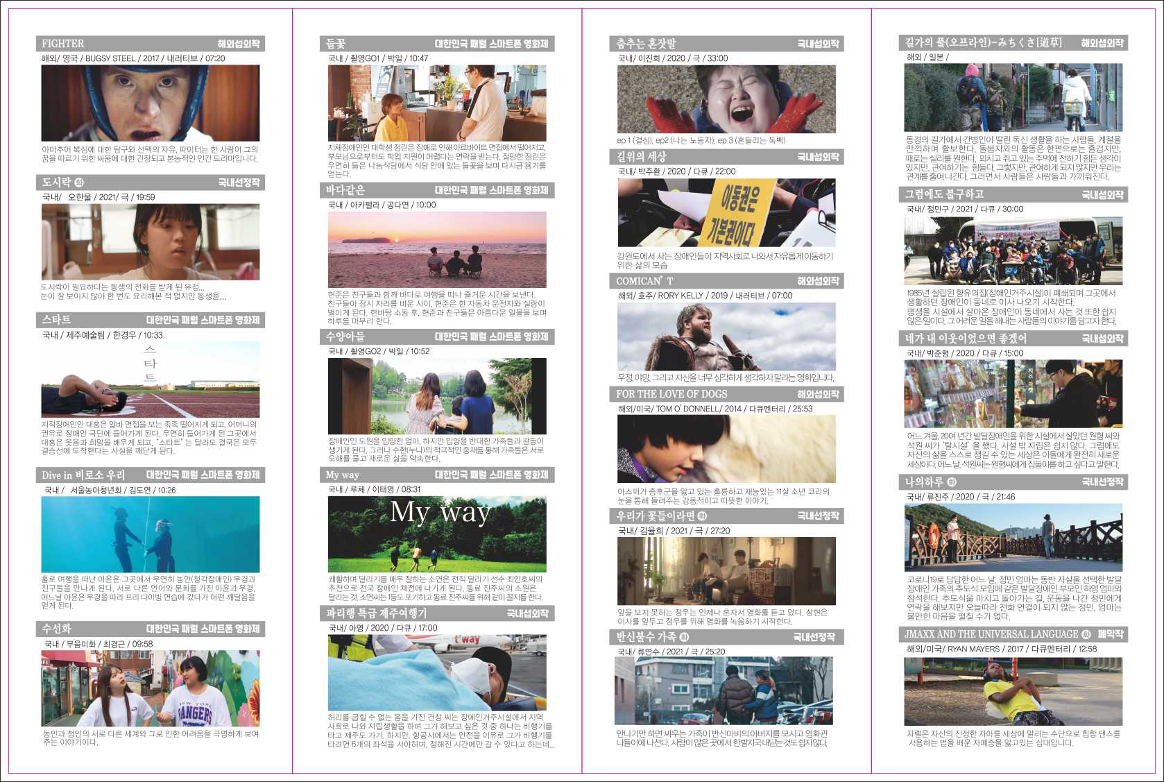○오프라인 상영 : 복지이음마루(2일, 3일) , 제주DPI(4일) , 탐라장애인종합복지관 다목적실 (5일)