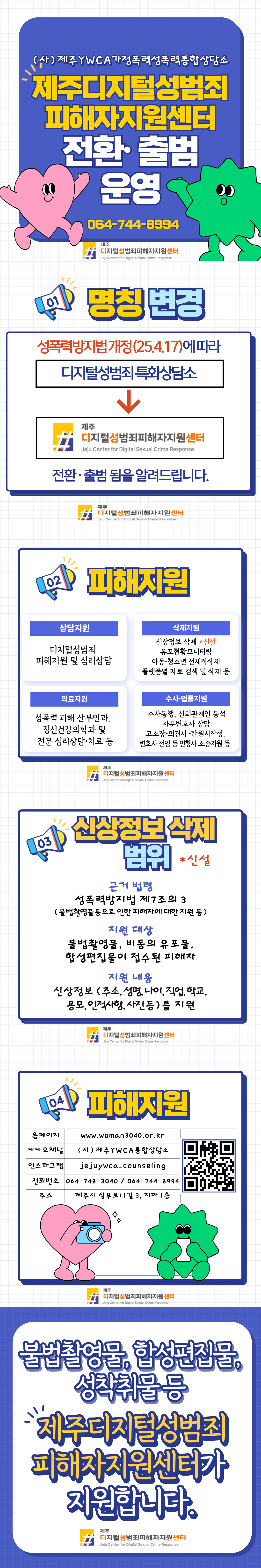 성폭력방지법 개정(25.4.17.)에 따라 제주디지털성범죄피해자지원센터로 전환출범됩니다.