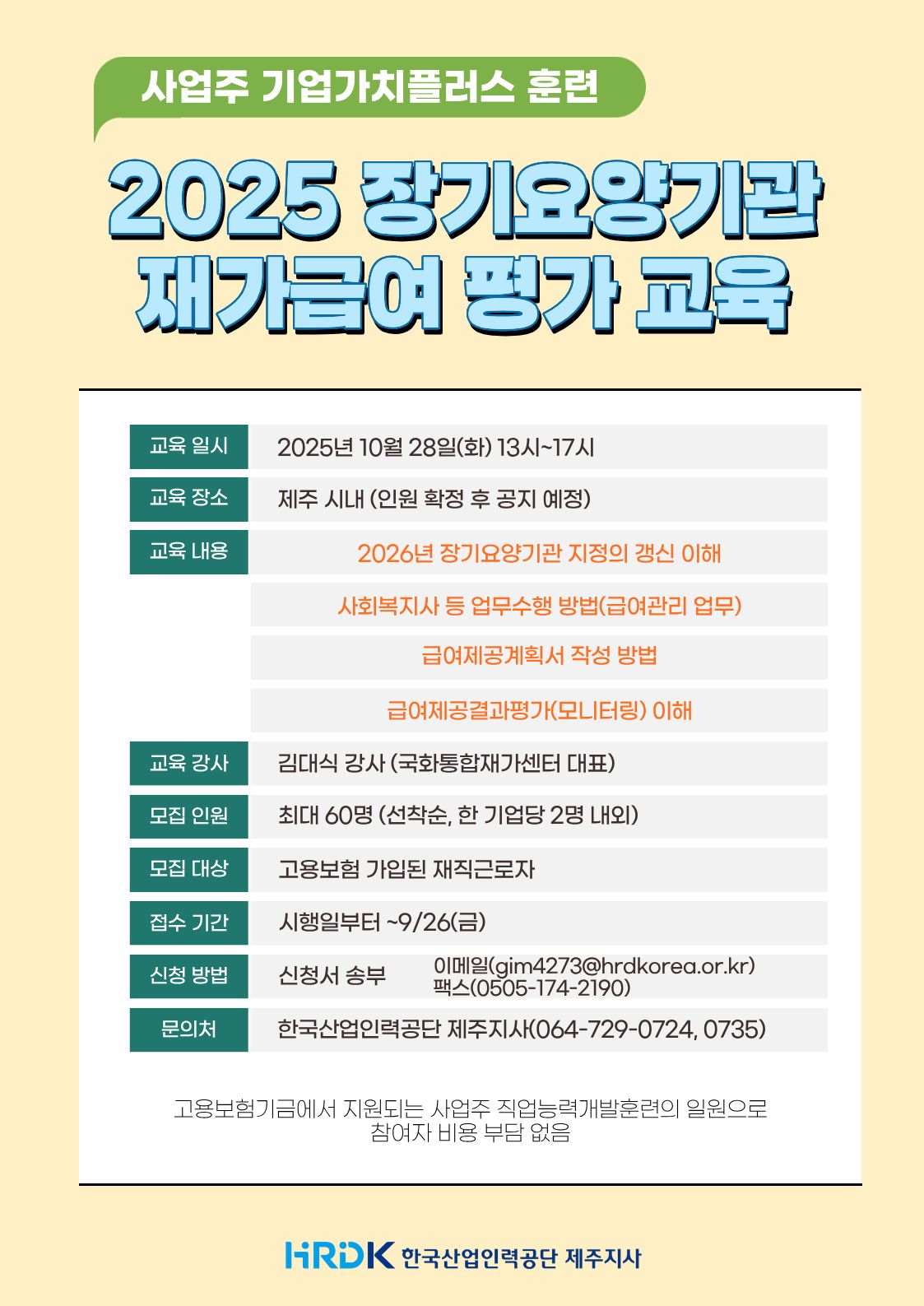 [한국산업인력공단 제주지사] 2025 장기요양기관 재가급여 평가 교육