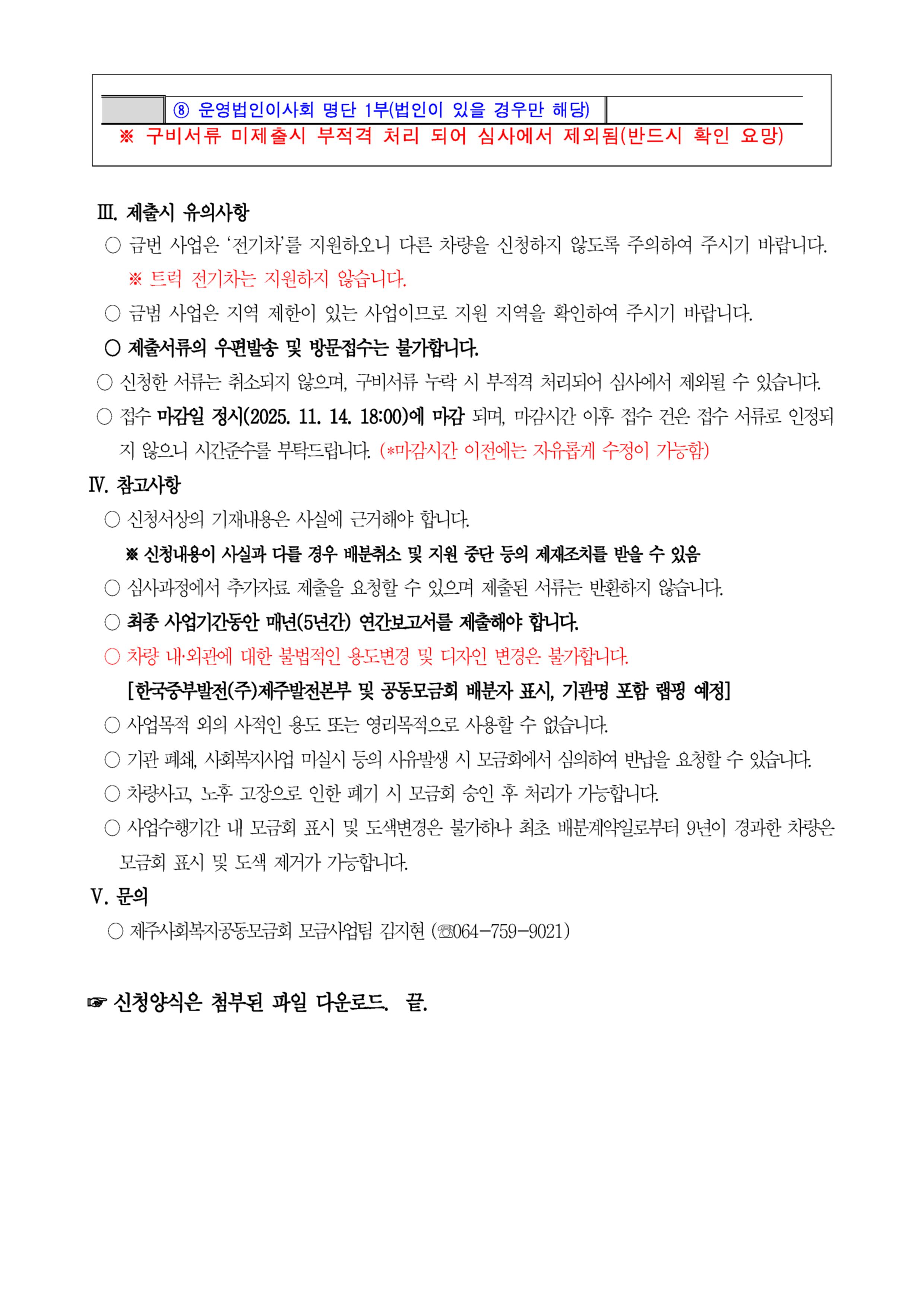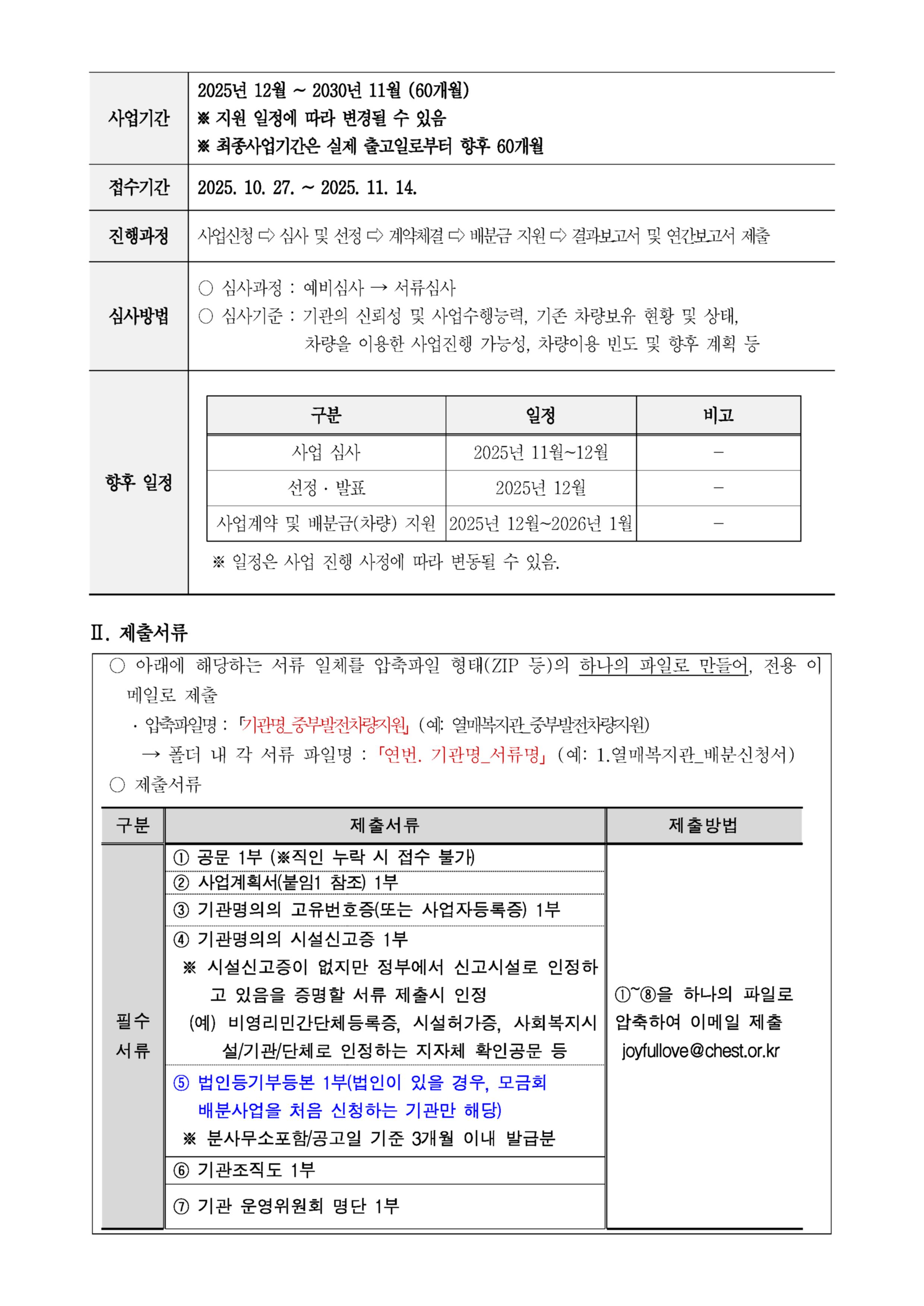 [사랑의열매] 한국중부발전(주) 제주발전본부 차량지원사업 공모