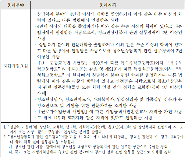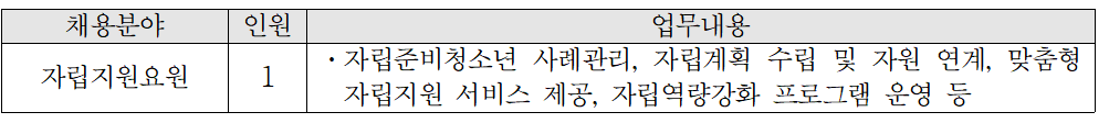 ※ 메일 접수 시 문서 제목 : [자립지원관_자립지원요원] 000(성명)