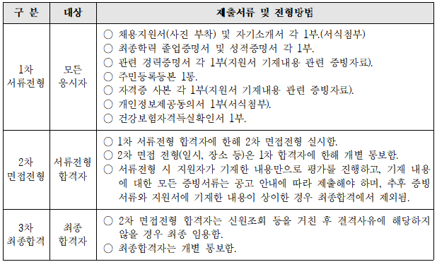 2) 채용 공고문을 자세히 읽어보고 작성하며, 제출서류의 누락 및 기재사항 누락, 허위 기재와 연락 불능 등으로 발생한 불이익은 일체