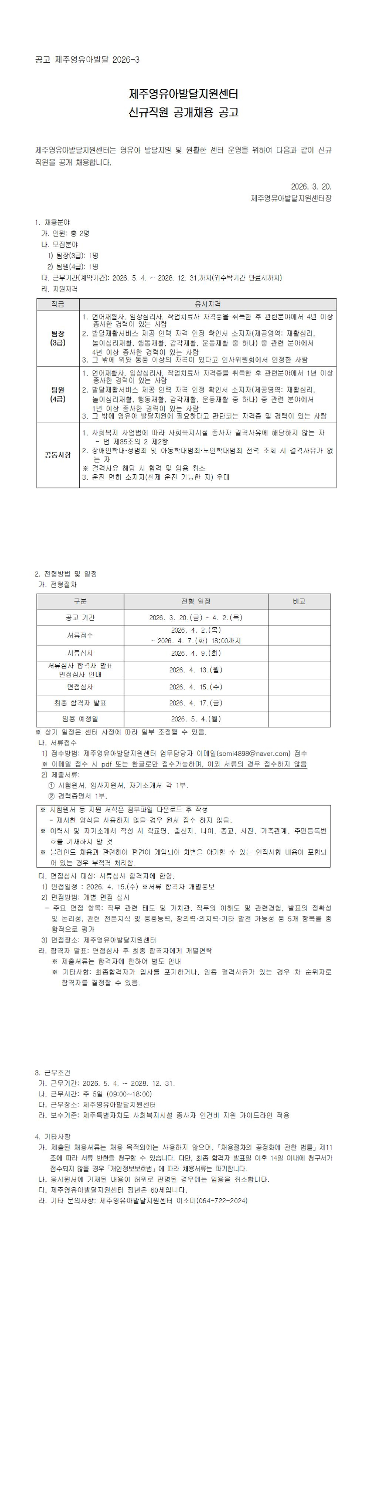 제주영유아발달지원센터 신규직원(언어재활사, 임상심리사, 작업치료사 등) 공개채용 공고