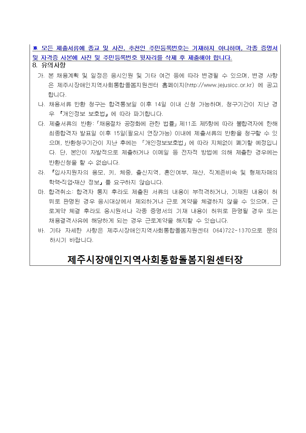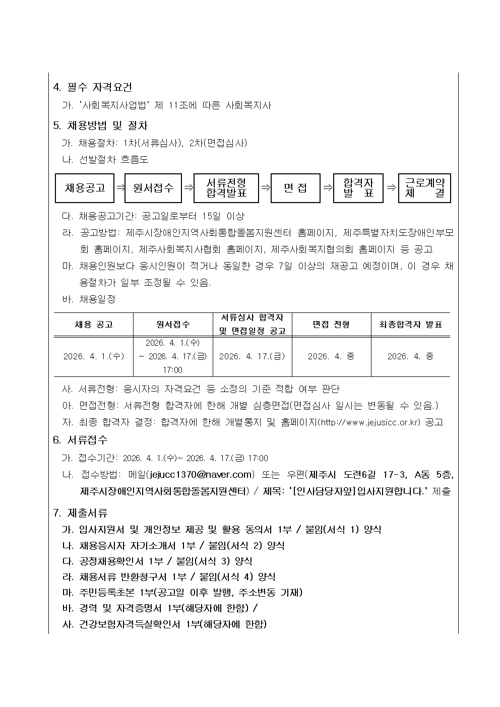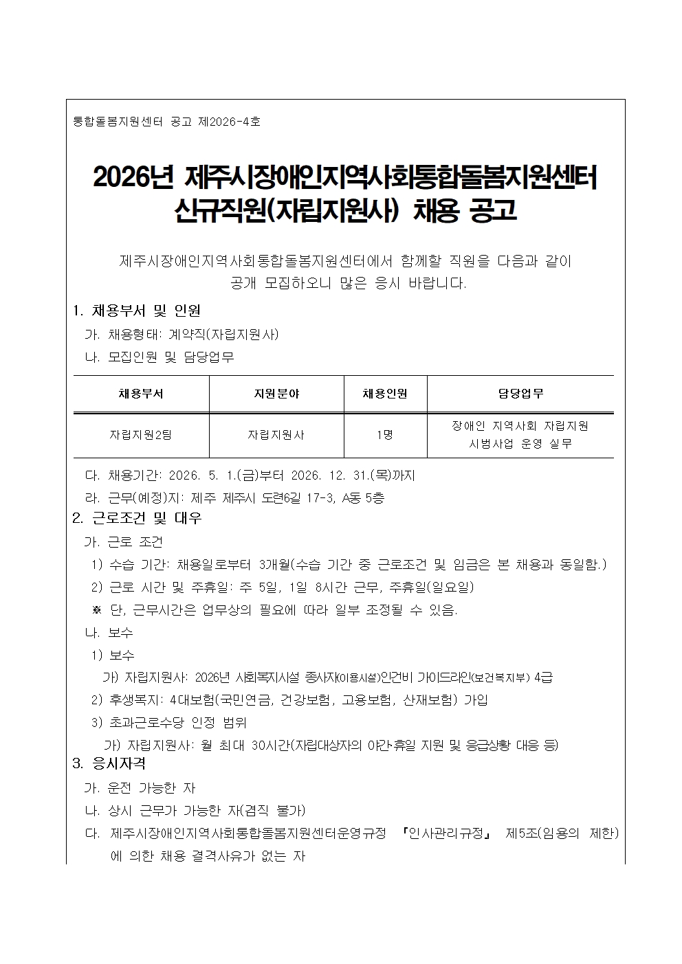 [재공고] 2026년 제주시장애인지역사회통합돌봄지원센터 신규직원(자립지원사) 채용 공고