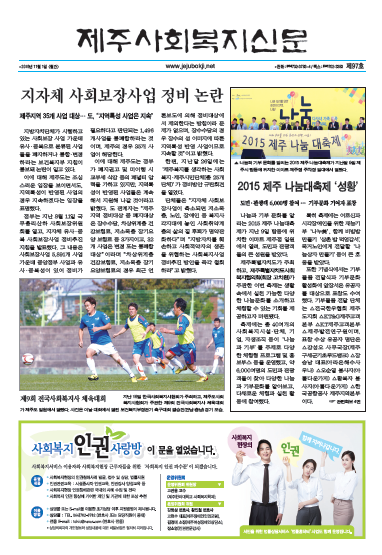 | (1면) 지자체 사회보장사업 정비 논란 2015 제주 나눔대축제‘성황’ |
