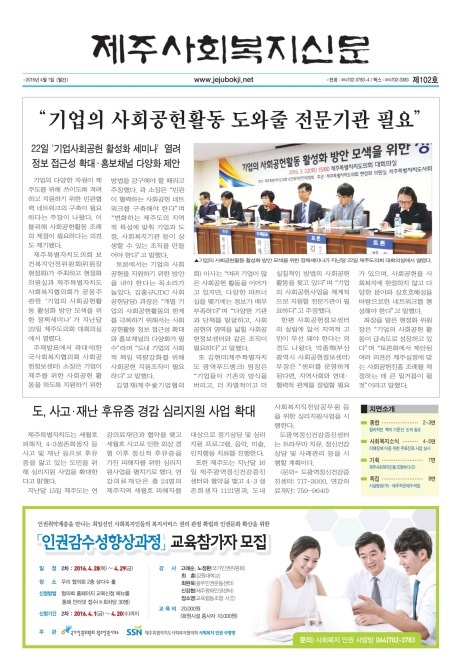 | 제주사회복지신문 제102호(2016.4.1)지면소개 | |