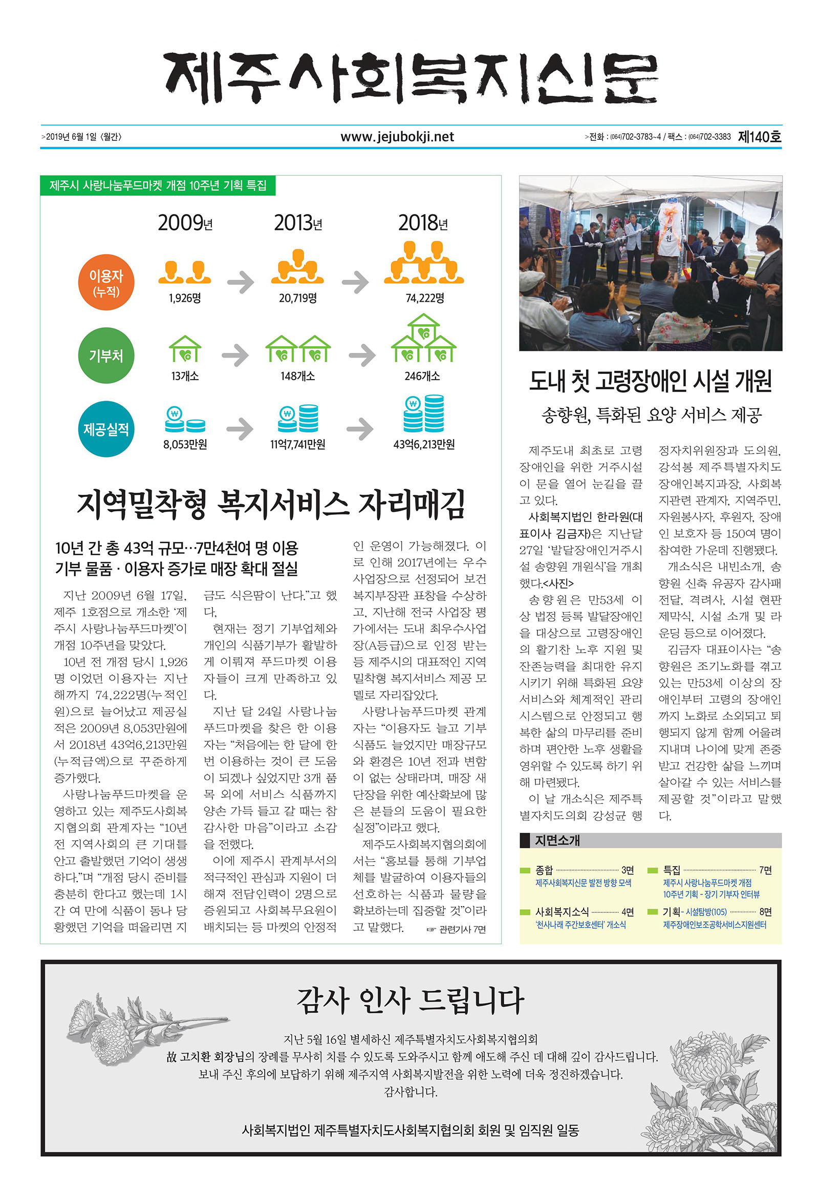| 제주사회복지신문 제140호(2019.6.1) 지면소개 | |