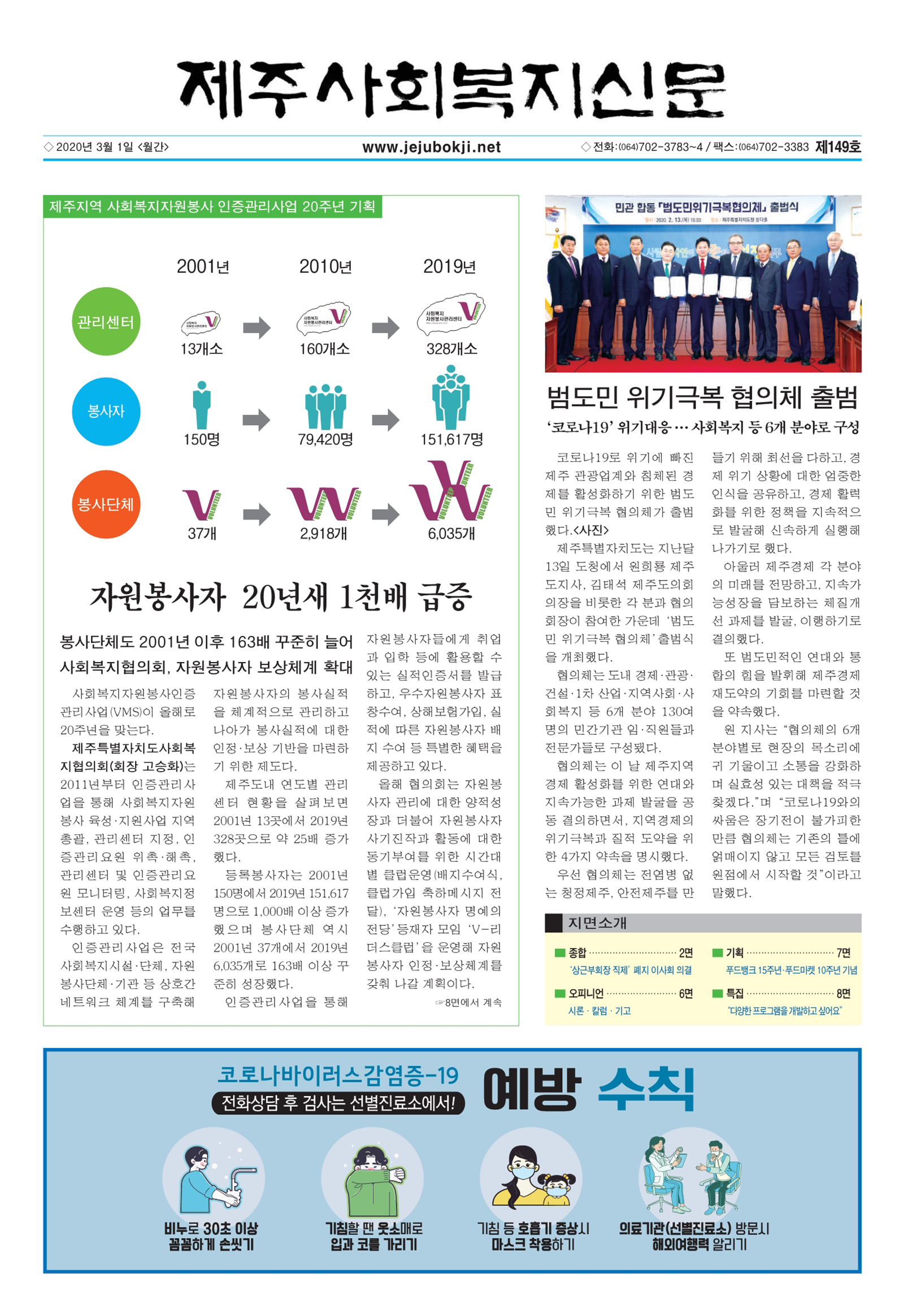 제주사회복지신문 제149호 (2020.3.1) 지면소개