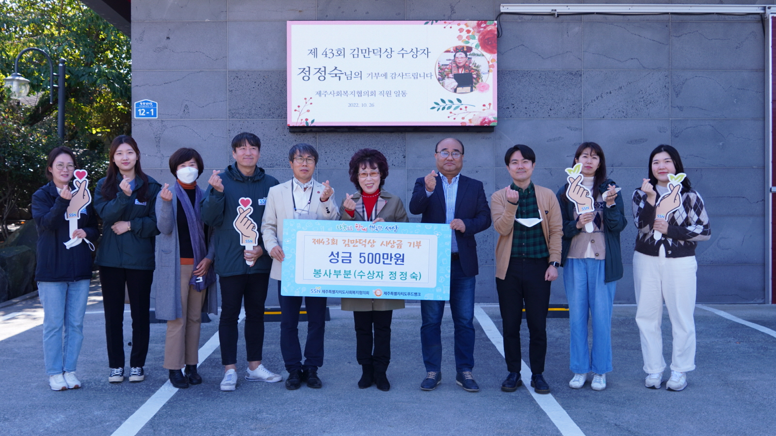 이날 기탁해주신 상금은 제주특별자치도사회복지협의회와 제주양로원에 전달돼 경제적 어려움을 겪는 지역 이웃들을 위한 사업에 사용될 예정입니다.