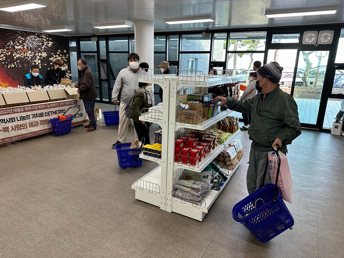 직접 찾아가 이동형 편의점 형태의 차량(1t트럭 개조)을 통해 기부식품을 제공하고