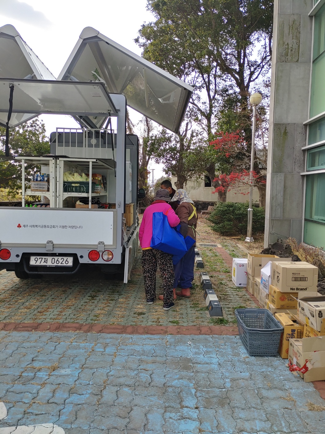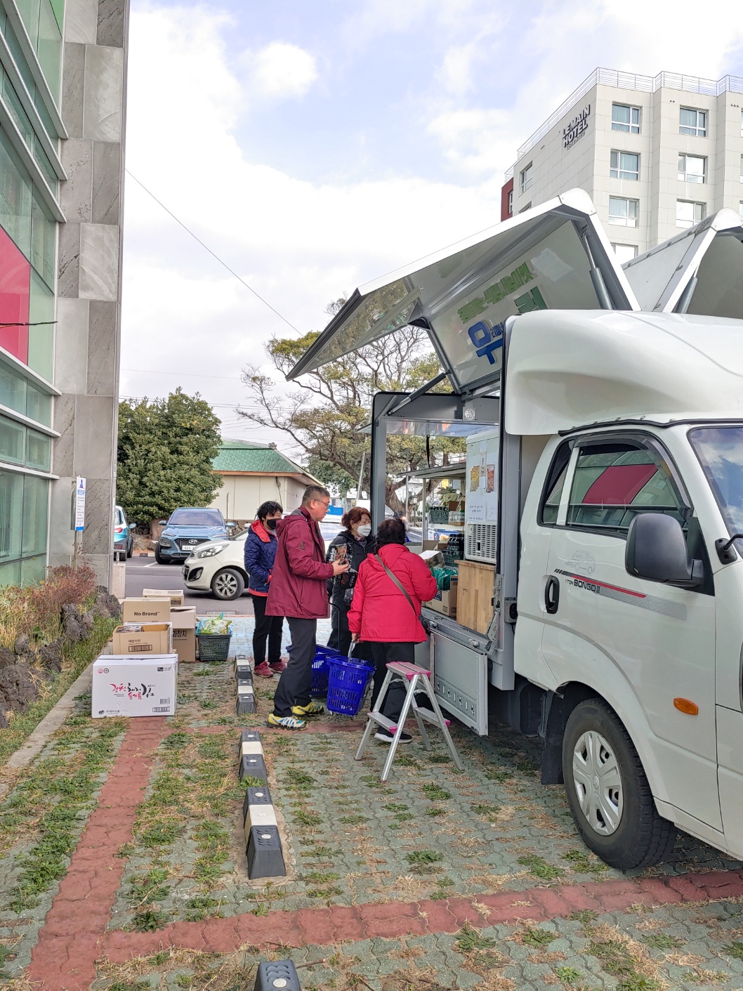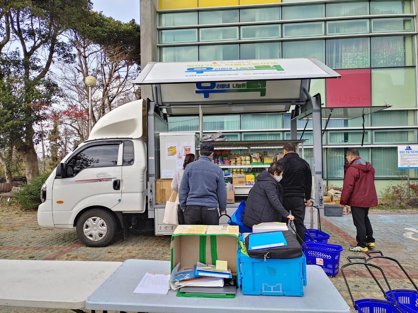 직접 찾아가 이동형 편의점 형태의 차량(1t트럭 개조)을 통해 기부식품을 제공하고