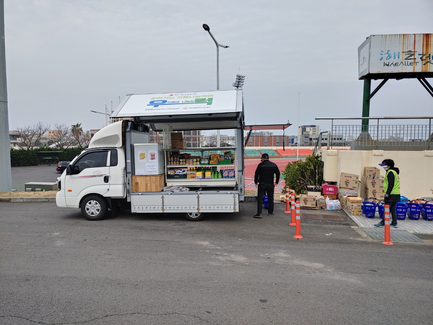 직접 찾아가 이동형 편의점 형태의 차량(1t트럭 개조)을 통해 기부식품을 제공하고