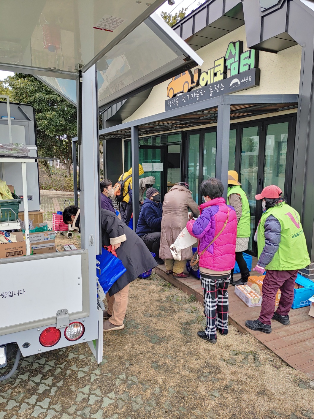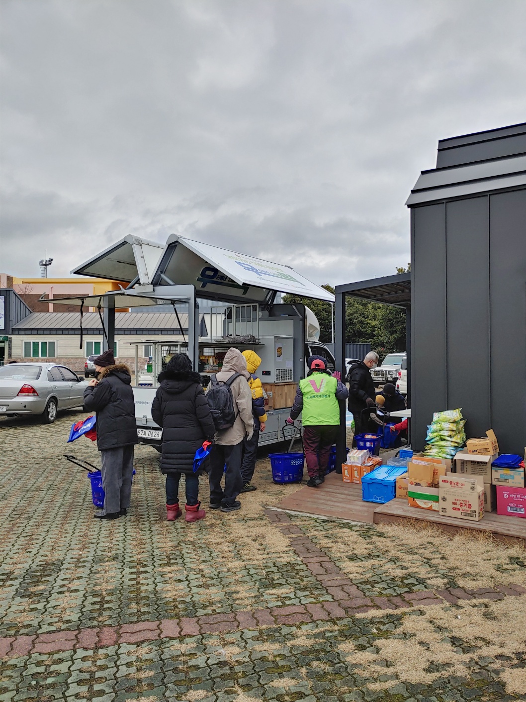 직접 찾아가 이동형 편의점 형태의 차량(1t트럭 개조)을 통해 기부식품을 제공하고