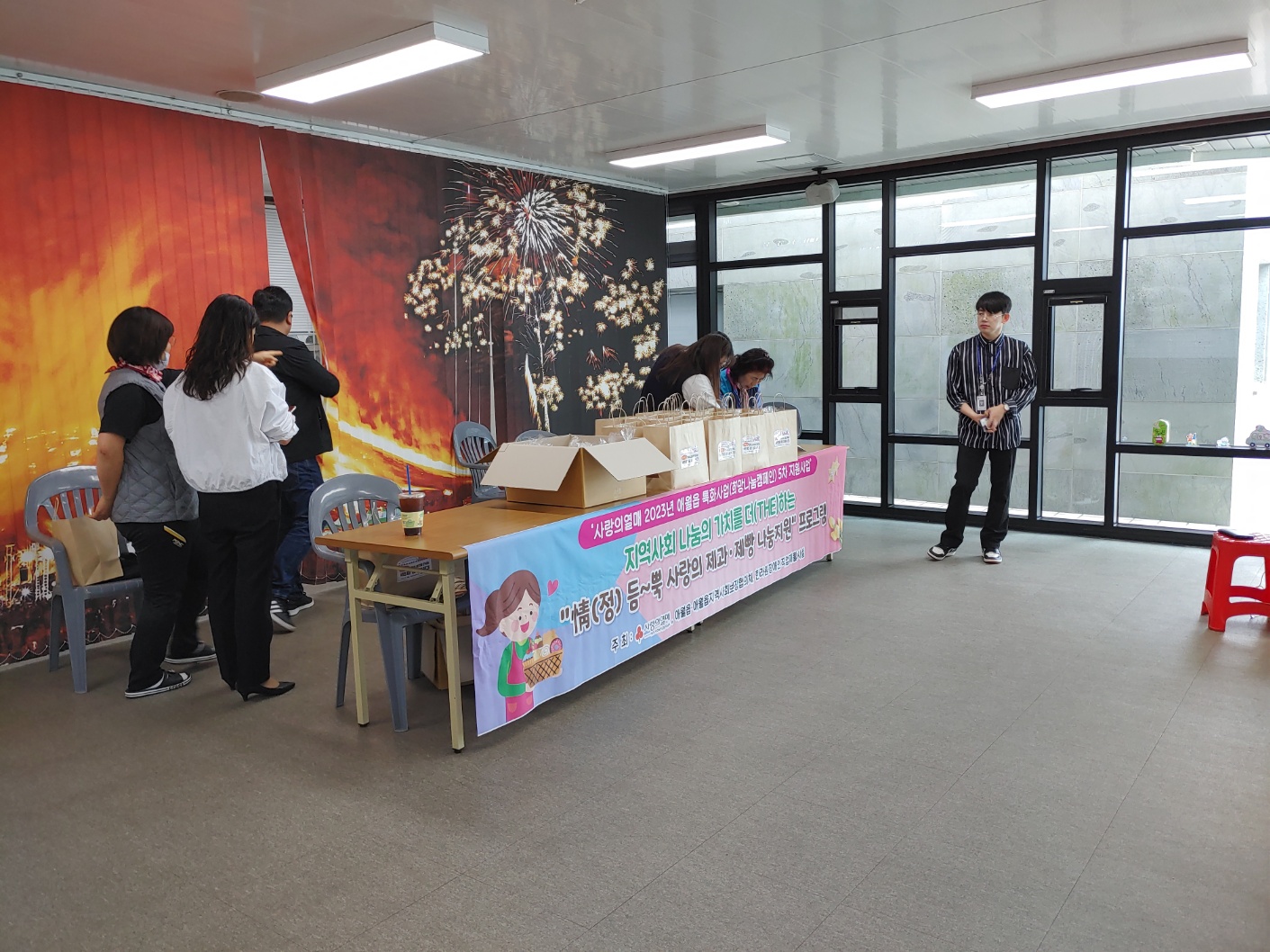 시간이 많이 걸렸습니다. 다행히 애월읍사무소에서 빵을 배분해주시려 나오신 분들의 도움을 받아