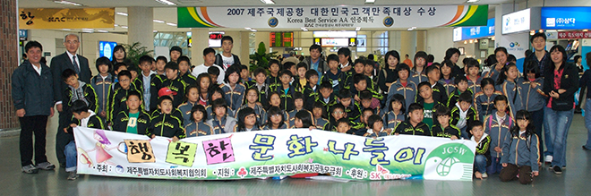 지난 10. 25(목)부터 27(토)까지 2박3일간 홍익아동복지센터 등 보육시설 아동 48명과 대정초등학교 등 서귀포시 읍지역 초등학교 4~6학년 27명 등 75명이 문화나들이에 참가하였다.