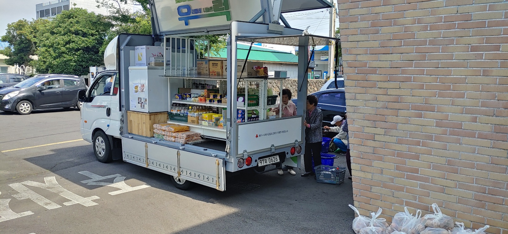 직접 찾아가 이동형 편의점 형태의 차량(1t트럭 개조)을 통해 기부식품을 제공하고