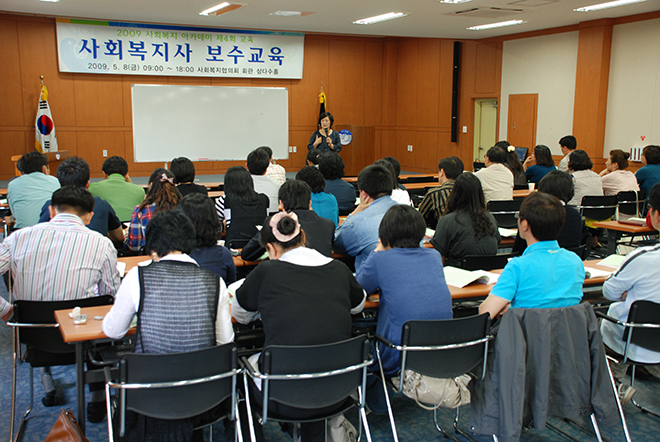지난 5. 8일 도내 사회복지시설,단체에서 종사하고 있는 사회복지사 60명을 대상으로 보수교육을 실시하였습니다. 1일 8시간동안 교육에 참여해주신 복지사님들에게 감사의 말씀을 전합니다.