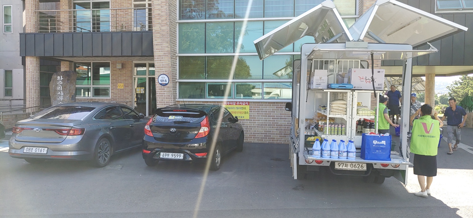 직접 찾아가 이동형 편의점 형태의 차량(1t트럭 개조)을 통해 기부식품을 제공하고