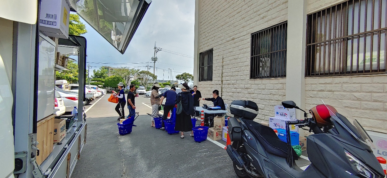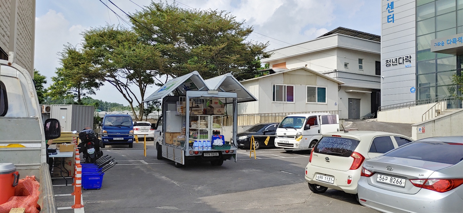직접 찾아가 이동형 편의점 형태의 차량(1t트럭 개조)을 통해 기부식품을 제공하고