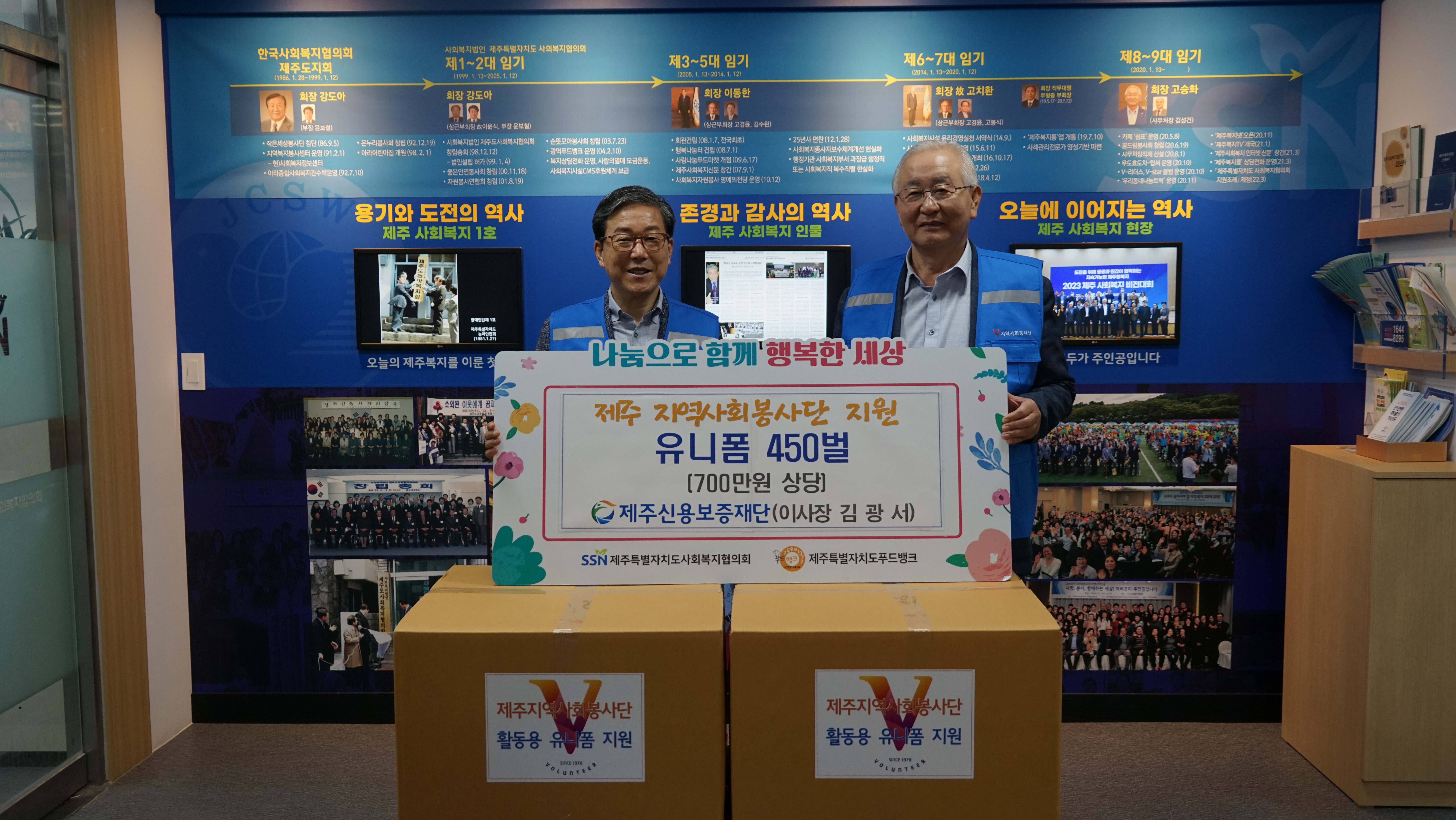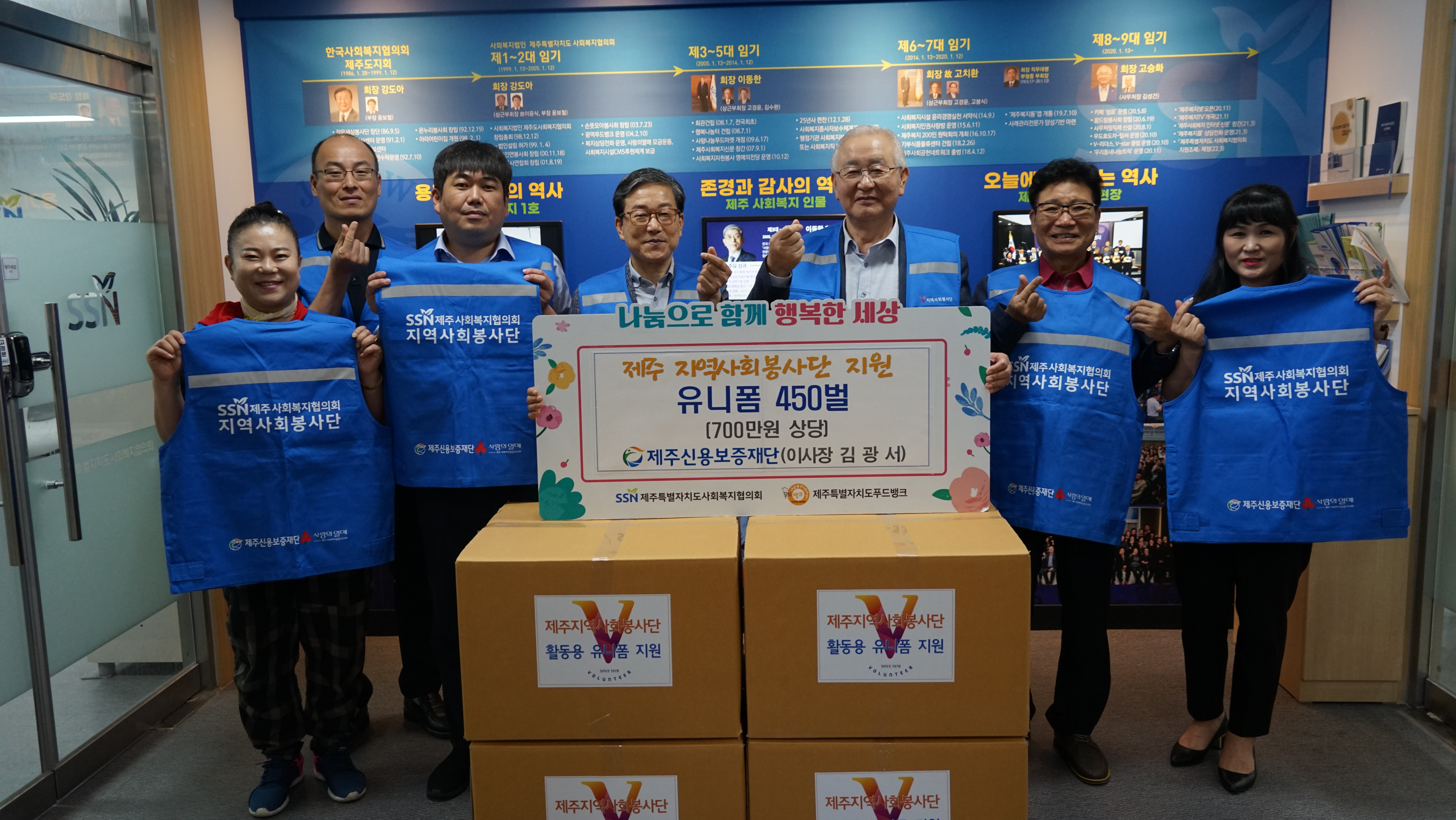 제주신용보증재단, 지역사회봉사단 유니폼 450벌 전달