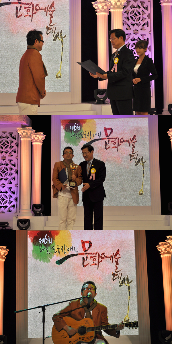 양정원씨는 대한민국장애인문화예술대상 중 문화체육관광부 장관상인 대중예술상을 수상하셨습니다.