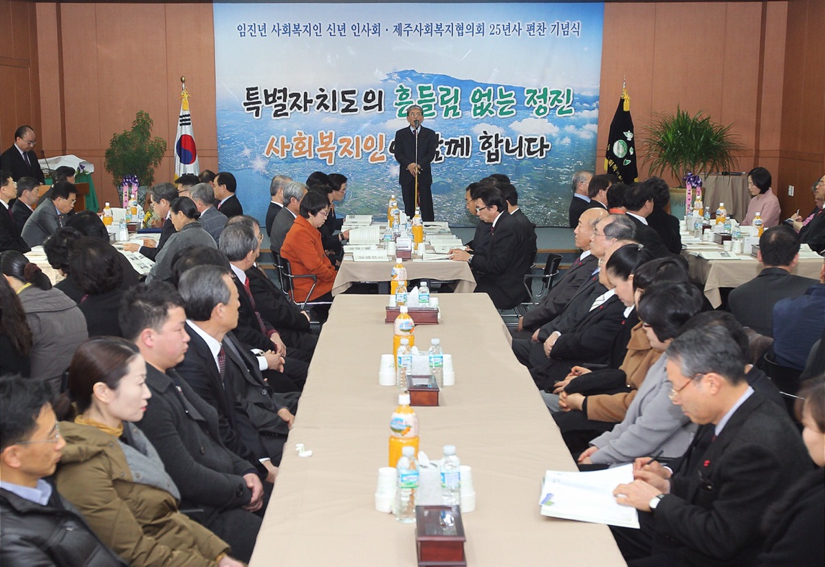 임진년 새해를 맞이하여 제주지역 사회복지의 발전을 기원하고 사회복지인의 화합과 결속을 도모하기 위한 '사회복지인 신년인사회 및 제주협의회 25년사 편찬기념식'이 각계 인사들이 참여한 가운데 1. 27(금) 우리 협의회 회관에서 성황리에 개최되었습니다.