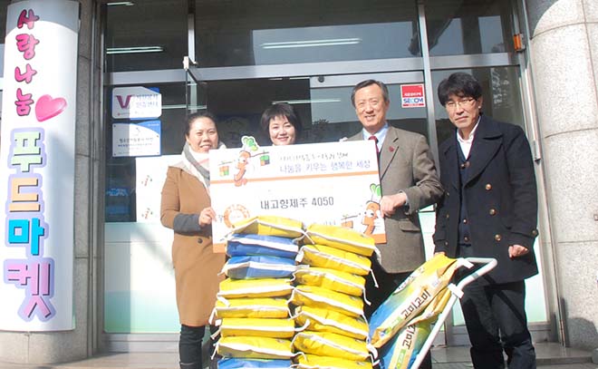손뜻모아봉사단 소속 김정희님이 소속되어 있는 '내고향제주 4050'에서 50만원 상당의 쌀을 기탁해주셨어요.