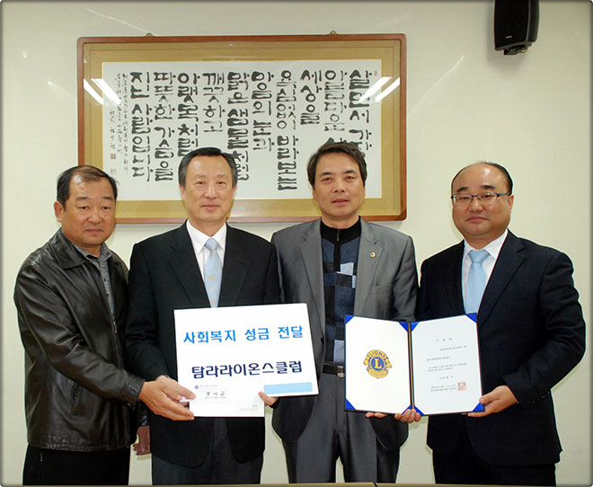탐라라이이온스클럽(회장 이백만)은 3월 18일 오전 제주특별자치도사회복지협의회(회장 고치환)를 방문하여 사회복지 성금을 전달했습니다.