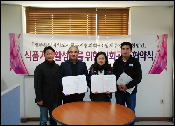 제주특별자치도사회복지협의회(회장 고치환)와 소담제주영농조합법인(대표 김미순)는지난 18일(목) 소담제주 회의실에서 업무협약을 체결했습니다.