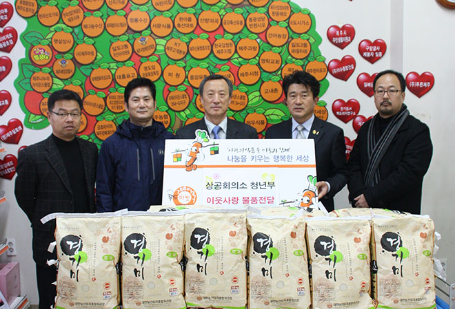 제주상공회의소 청년부(회장 안성)는 연말을 맞이하여 제주특별자치도사회복지협의회(회장 고치환)이 운영하는‘사랑나눔 푸드마켓’에 100만원 상당의 쌀 25포대( 250kg)를 기탁해주셨습니다.