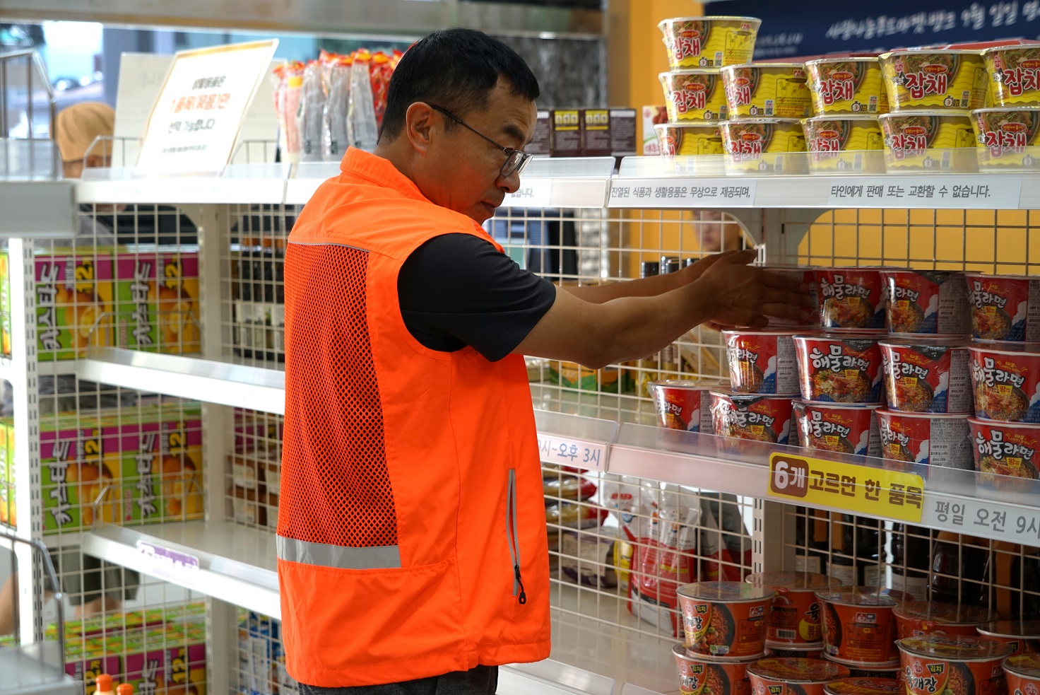 류 대표님은 이날 기부받은 식품을 매장에 진열하고 푸드마켓 매장 방문이 어려운 분들을 위해