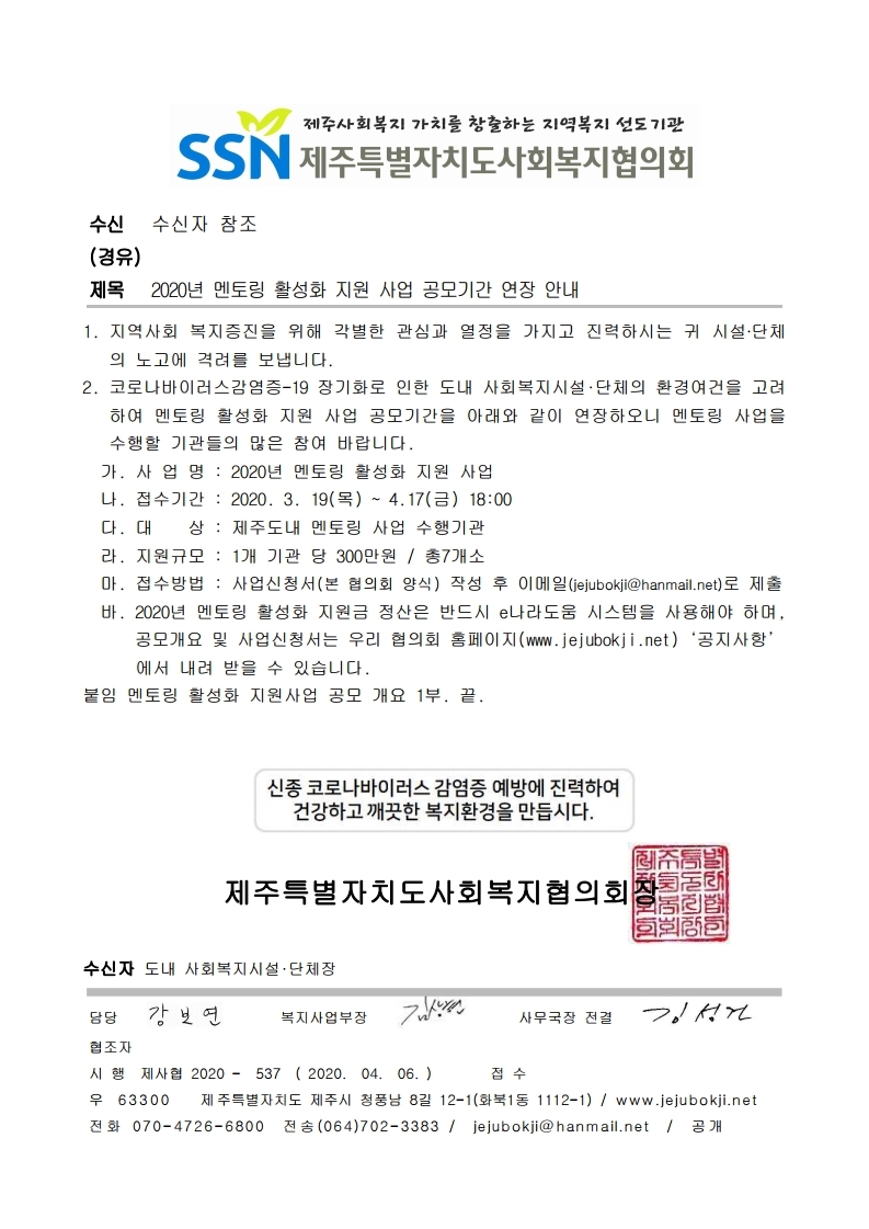 2020년 멘토링 활성화 지원사업 공모기간 연장 안내