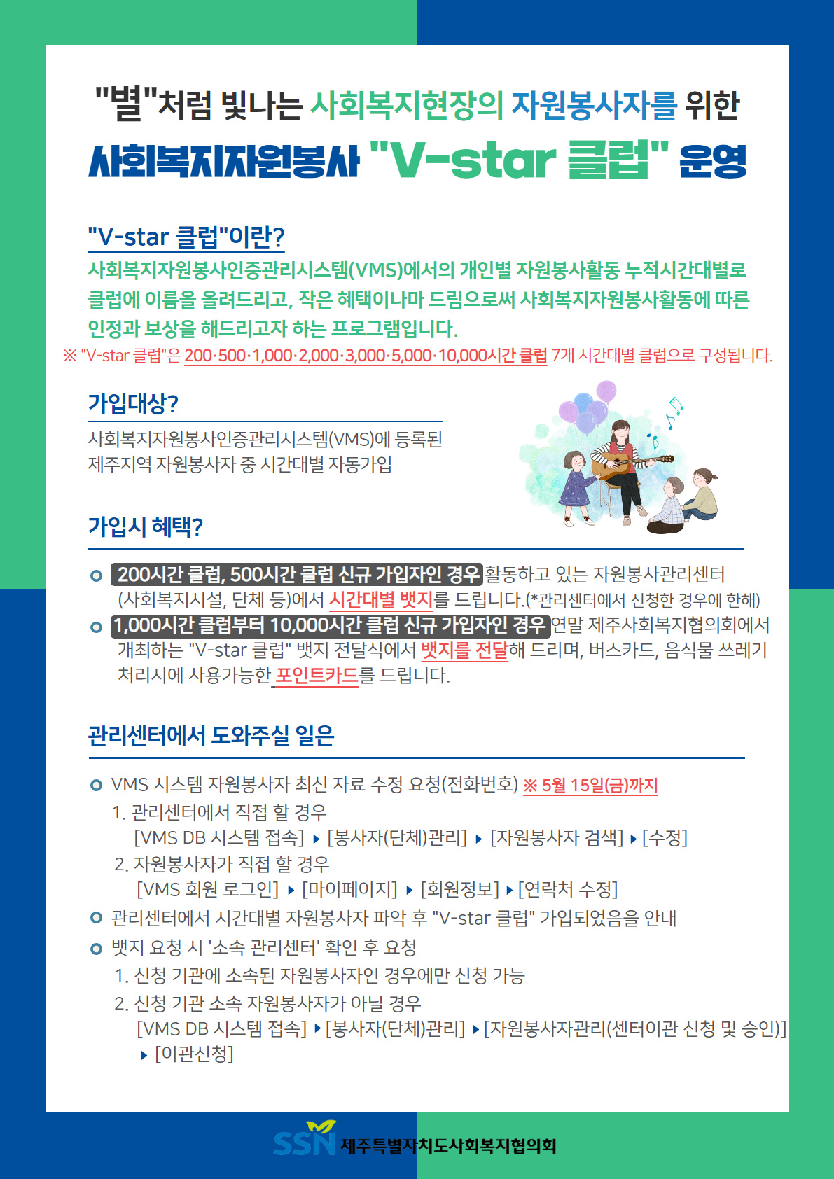 사회복지자원봉사활동 누적시간 인정,보상을 위한「V-star 클럽」운영 안내