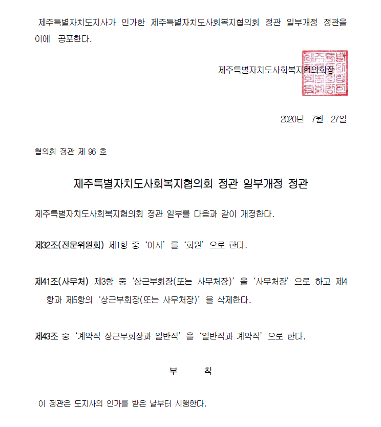 정관 일부개정 정관 공포