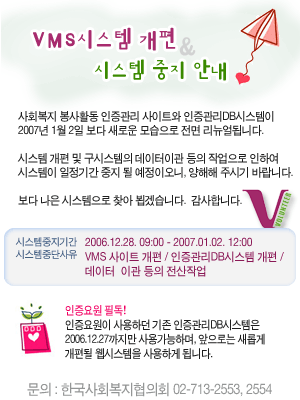 사회복지봉사활동 인증관리DB시스템 일시중단 안내