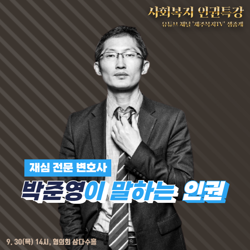 ※ 특강은 현장 강의와 더불어 우리 협의회 유튜브 채널 ‘제주복지TV’를 통해 생중계 (클릭) 예정