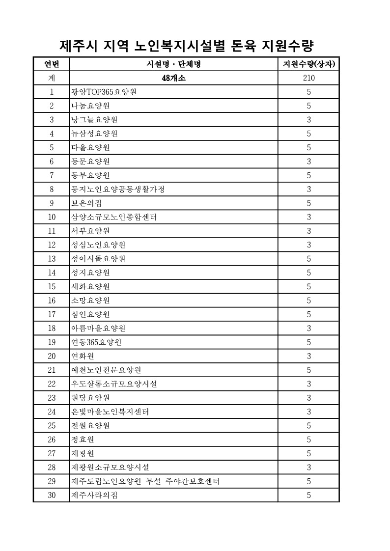 제주시 관내 노인복지(생활)시설 돈육 배분 수량 및 인수증 서식