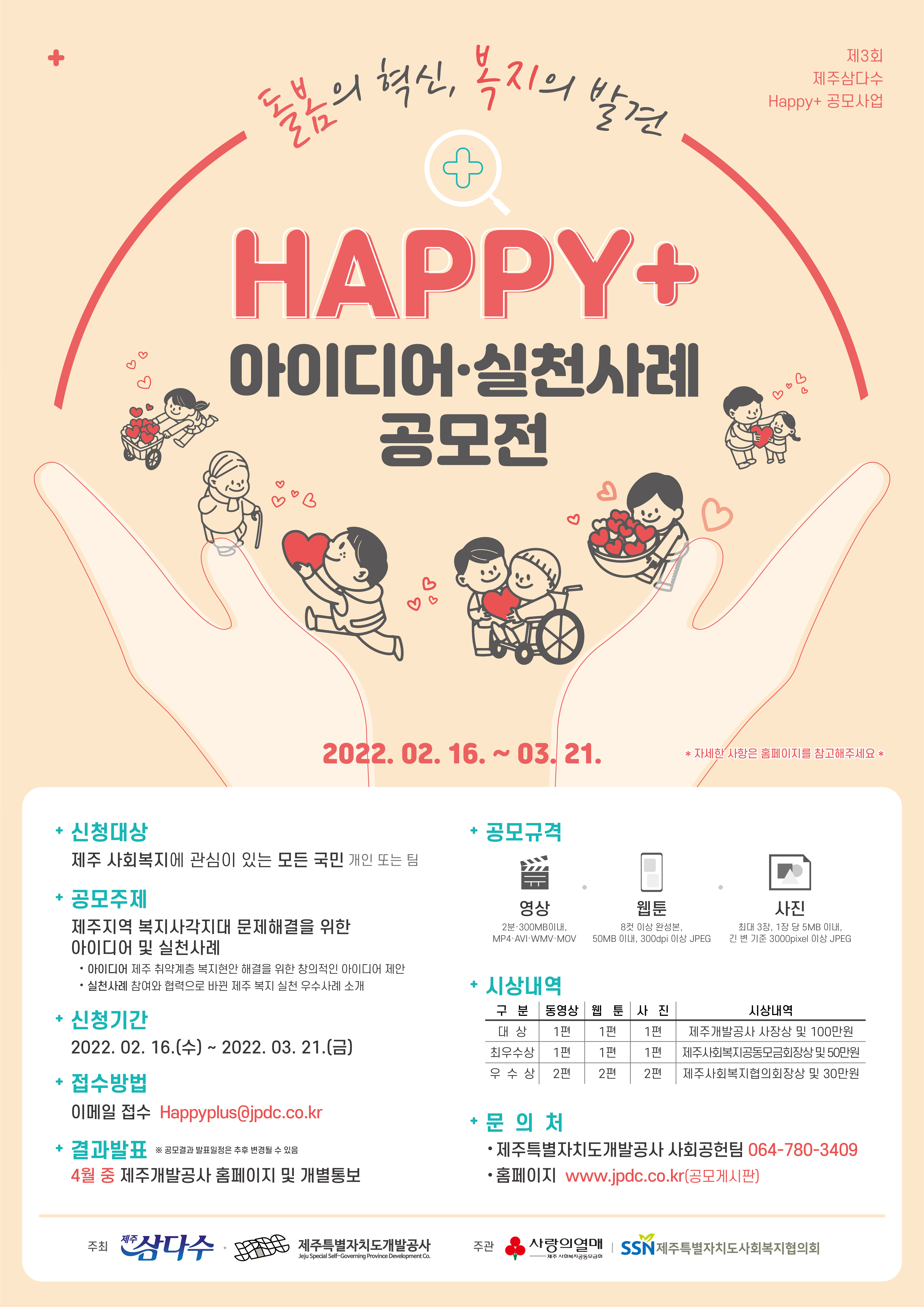 ○ 공모명 : ‘Happy+ 돌봄의 혁신, 복지의 발전' 제주복지 아이디어 · 사례 공모전