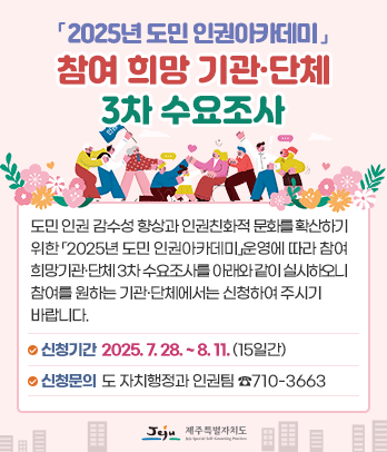 2.「2025년 도민 인권아카데미」참여 희망 기관·단체에 대하여 수요조사(3차)를 아래와 같이 실시하오니 기간내 신청 부탁드립니다.