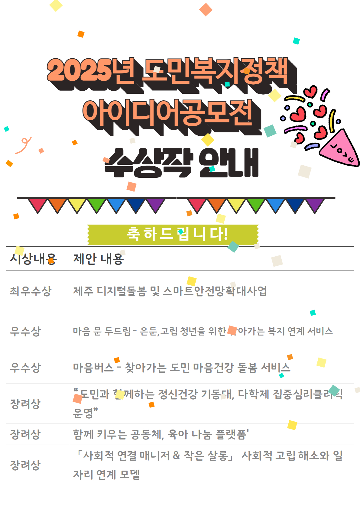 2025년 도민복지정책아이디어공모전 결과안내