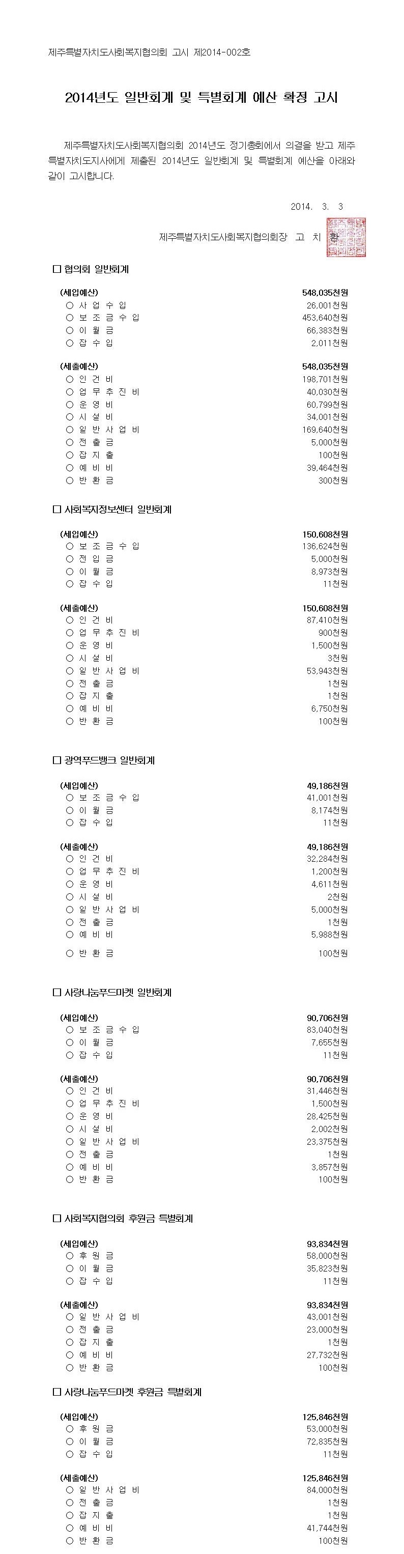 제주사회복지협의회 협의회 알림 협의회 고시·공고