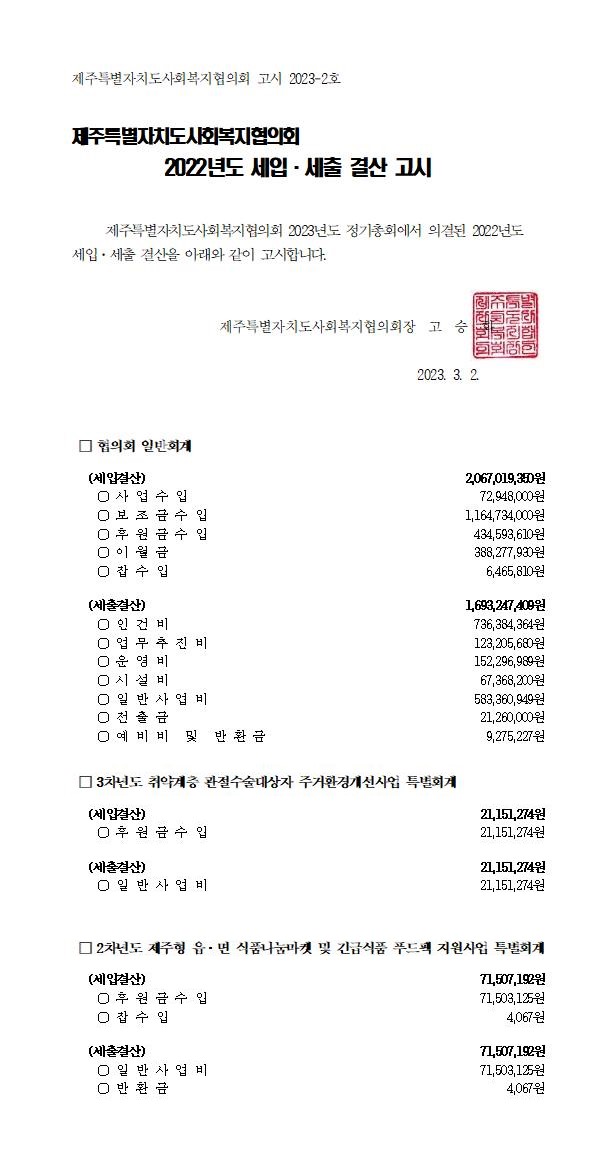 2022년도 세입세출 결산고시