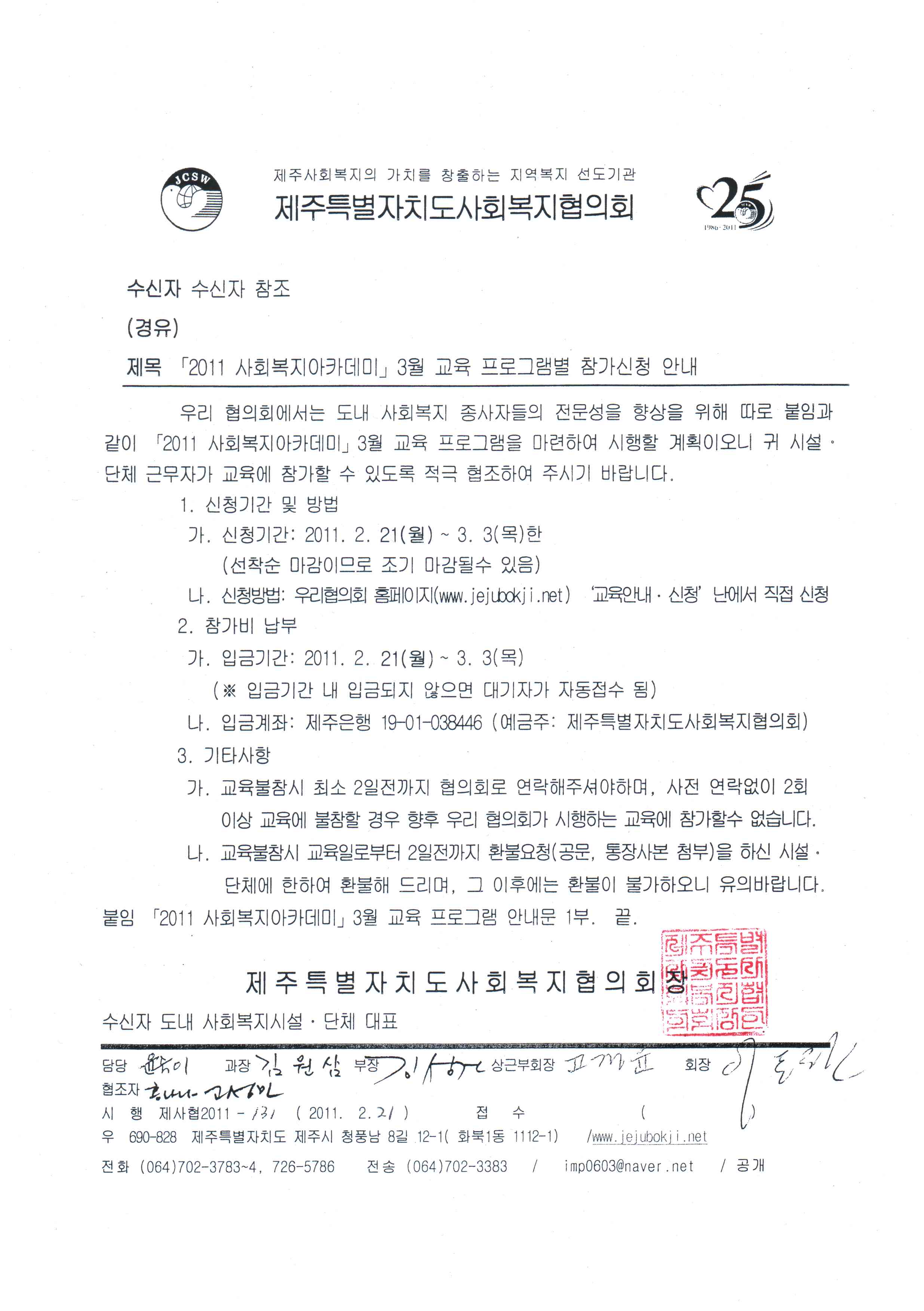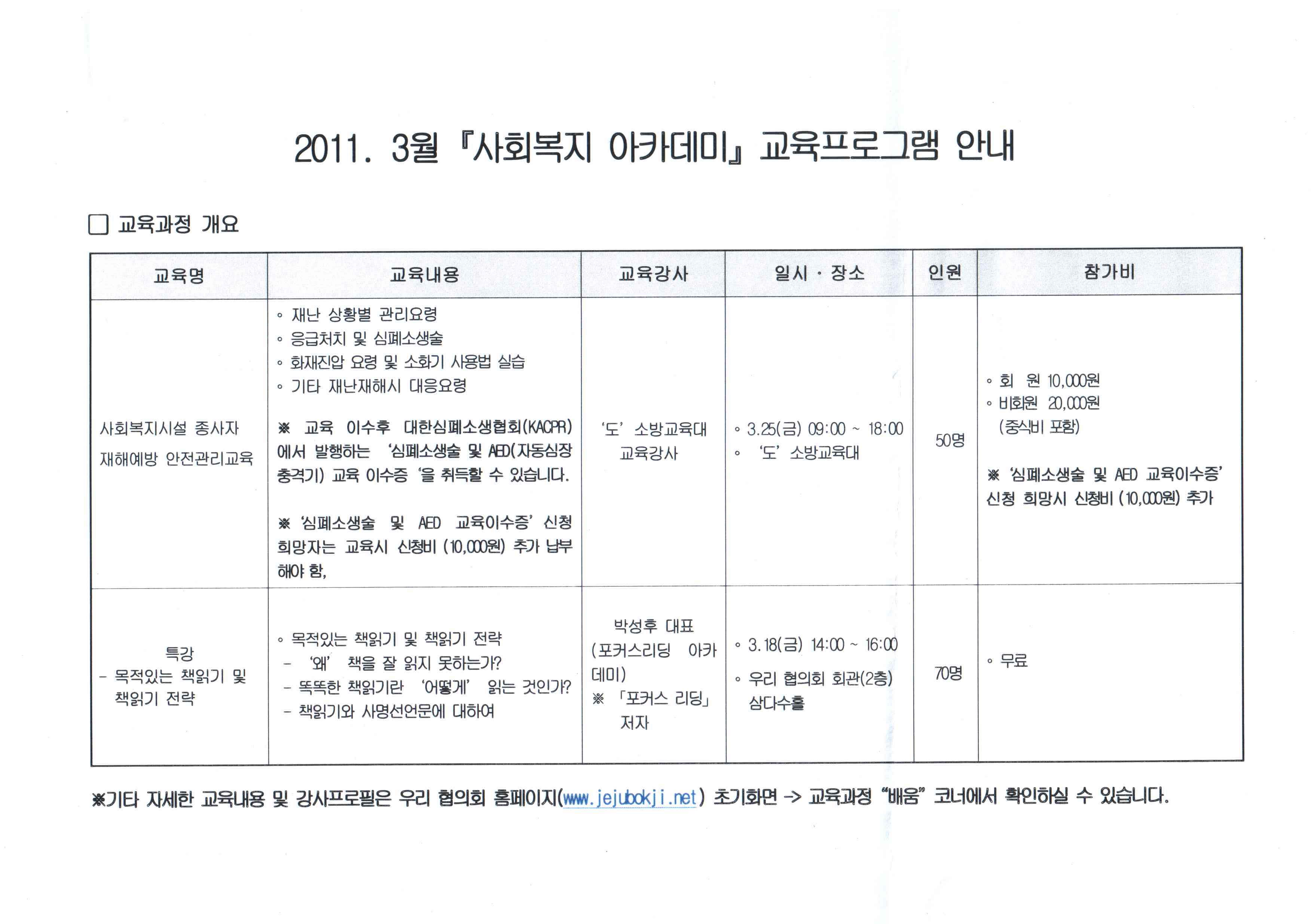 2011 사회복지아카데미 3월 교육 프로그램별 참가신청 안내