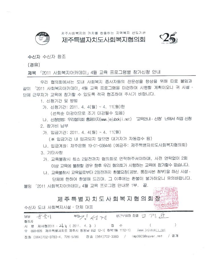 「2011 사회복지아카데미」4월 교육 프로그램별 참가신청 안내