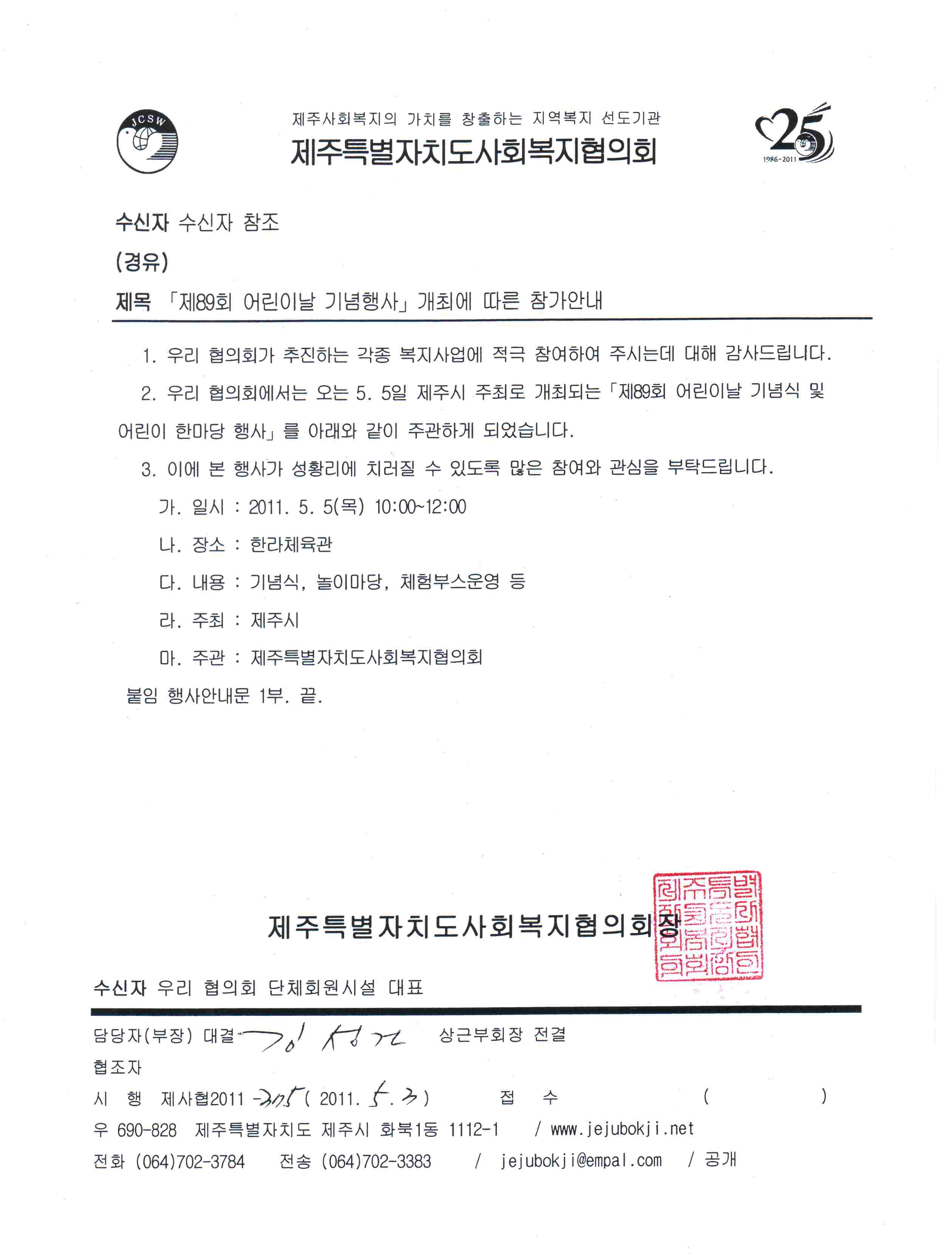 제89회 어린이날 기념행사 참가안내