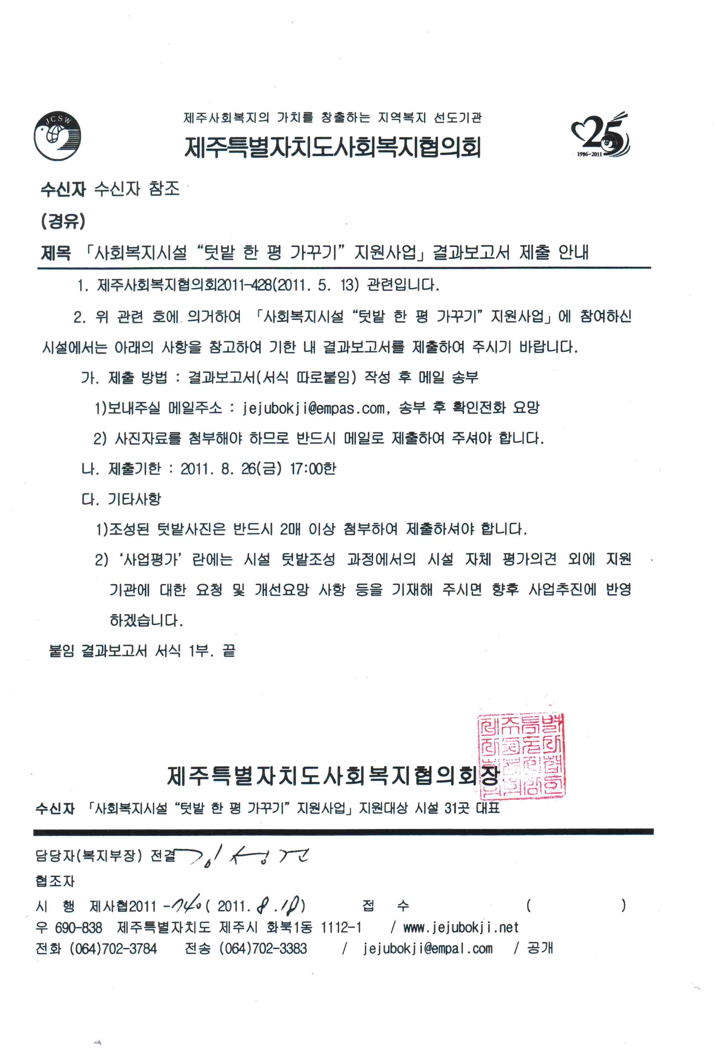사회복지시설 텃밭 한 평 가꾸기 지원사업 결과보고서 제출