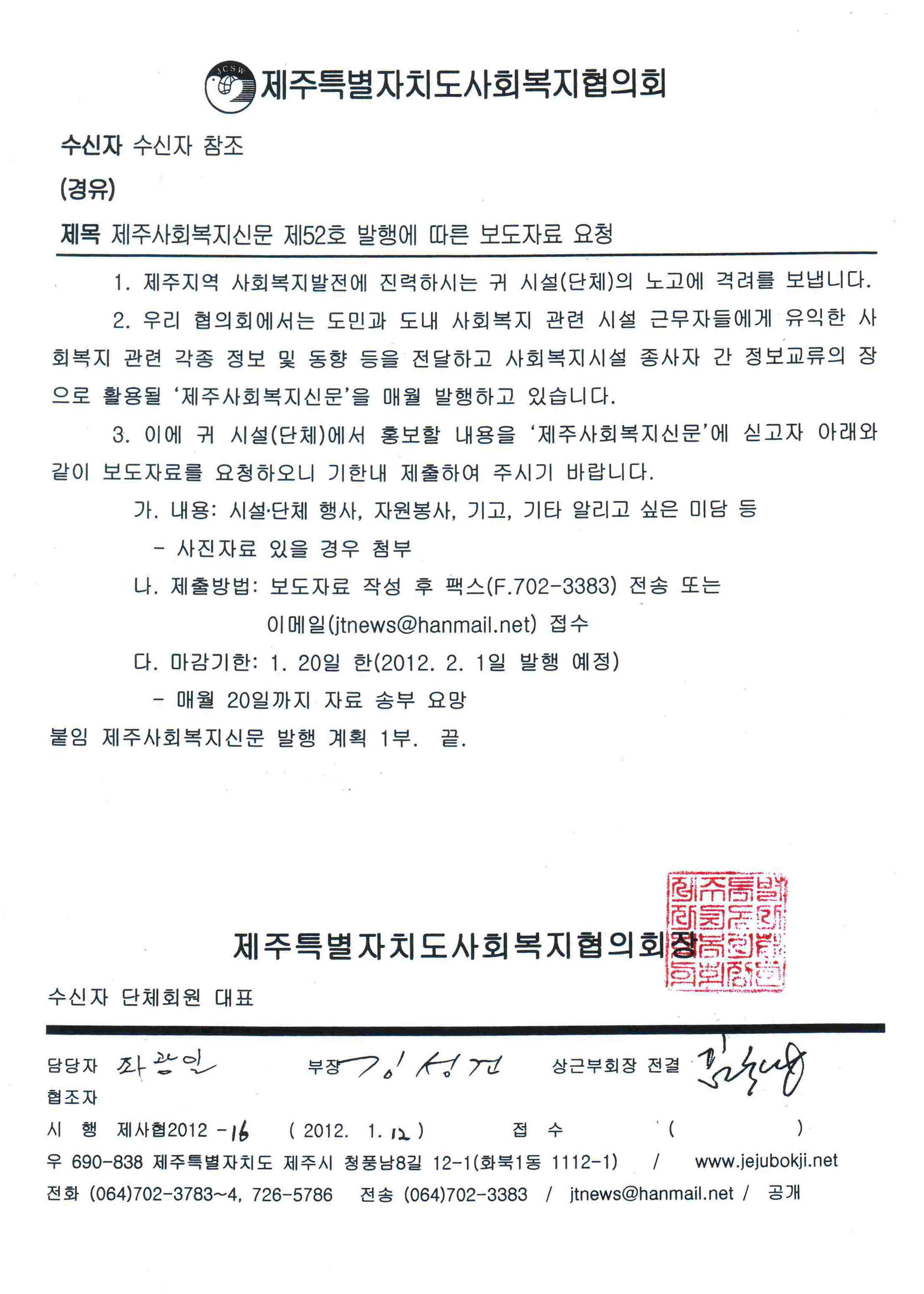 사회복지신문 52호 보도자료 요청