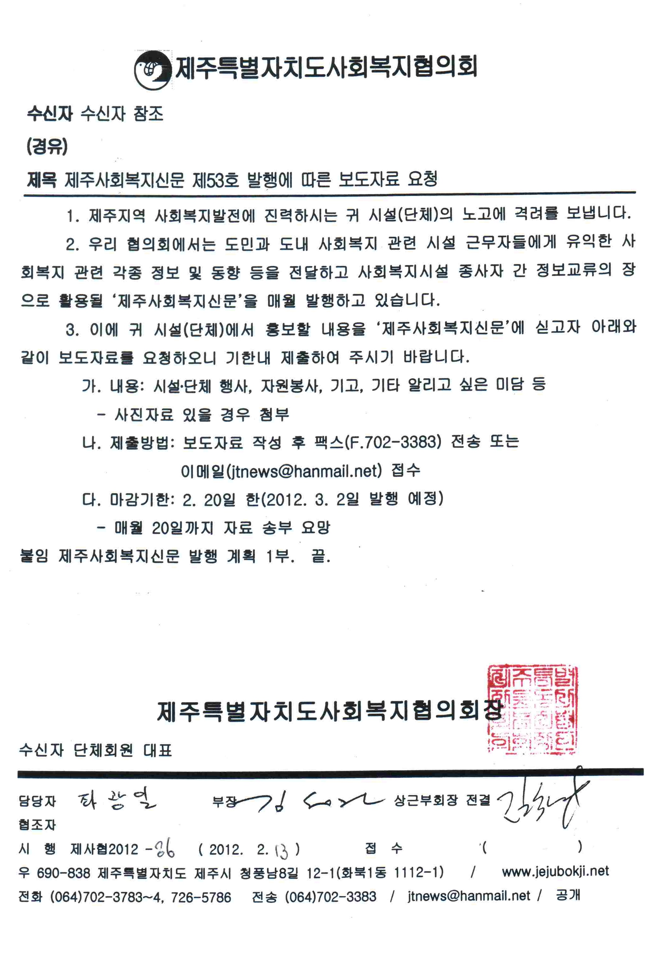 사회복지신문 53호 보도자료 요청